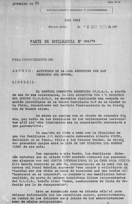 Anteriormente, también publiqué algunos de los elementos descubiertos en documentos confeccionados en esos años por la entonces Secretaría de Inteligencia del Estado (SIDE), que ahora fueron entregados a la Liga Argentina por los Derechos del Hombre (LADH) después de un extenso relevamiento ordenado por la interventora en la Agencia Federal de Inteligencia (AFI), Cristina Caamaño.